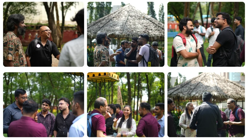 This meetup went longer than usual. The talks wrapped up by noon, and after the photo session people split into small groups and continued their own discussions. Everyone stayed back for a good while just talking and catching up. I was with Adharsh, listening to his usual engineering stories from Rapido, and I also got to meet a bunch of new faces.